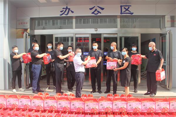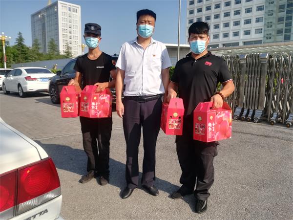 8月9日、10日北關(guān)區(qū)總工會副主席薛梅、保障部部長司尚雯來到公司,送來抗洪防疫慰問品鮮桃500多箱,向堅守崗位、奮戰(zhàn)一線的保安隊員進行慰問,提醒大家做好防控工作的同時一定要做好自身防護。