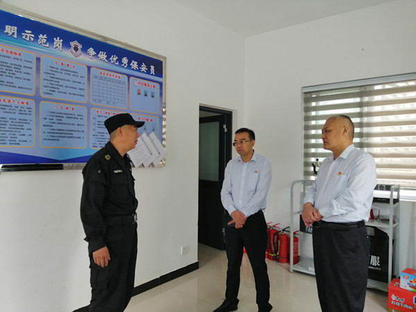 上午8時許,公司領(lǐng)導班子首先來到公司聯(lián)網(wǎng)報警指揮中心,看望了值班的同志,詢問了聯(lián)網(wǎng)報警系統(tǒng)運行情況。隨后,分為三組,分別到特保大隊中國文字博物館、殷墟博物苑,人防殷都檢察院、聯(lián)通公司,守押一大隊、五大隊駐地,鼎誠物業(yè)吉祥家園,技防國藥控股,藍盾駕校、鼎信公司,對堅守在工作崗位的員工進行了慰問。每到一處,公司領(lǐng)導都會詳細詢問員工生活和工作情況。王高峰在聯(lián)通公司崗點,詢問了文明標準崗創(chuàng)建情況,鼓勵他們積極創(chuàng)優(yōu)爭先;在守押一大隊駐地,聽取了石培瑞到任后的工作進展、車況和運行、隊員作息情況,瀏覽了隊務(wù)公示欄,還饒有興致地參觀了院內(nèi)的小菜園,叮囑一定要把隊員生活搞好,還可以開展豐富多彩的文體活動,增強隊伍的凝聚力和戰(zhàn)斗力。在吉祥家園,王高峰一行認真聽取了項目負責人的匯報,對鼎誠物業(yè)的工作提出了許多指導性意見。
