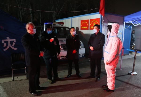 臘月的夜晚,最低氣溫已降到零度以下,堅守防疫一線的抗疫隊員依然在忙碌。王高峰和防疫隊員親切交談,“飯吃的怎么樣?”“穿的暖不暖和?”“休息的怎么樣?”。他說,當前疫情防控工作仍在關(guān)鍵時期,臨近春節(jié)返鄉(xiāng)人員不斷增多,一定做到嚴防死守,把“外防輸入”全面、具體、深入地落到實處?;疖囌臼欠酪叩闹匾翱冢且咔榉揽毓ぷ鞯牡谝痪€,你們舍小家、為大家,克服一切困難,堅守工作崗位,為全市疫情防控工作作出了積極貢獻。希望大家一如既往地發(fā)揚不怕苦、不怕累的工作作風,加強自我防護,注意勞逸結(jié)合,以最充沛的精力,堅決守好疫情防控第一道防線。