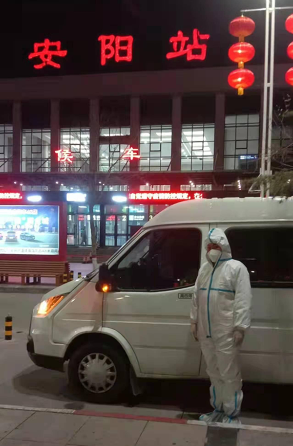 按照上級工作安排,要求學校安排車輛,用于接送醫(yī)護人員到社區(qū)、村委隔離點進行核酸檢測,從火車站接中高風險區(qū)返安人員到集中隔離點隔離,接送解除隔離的群眾回家。任務不僅風險大,而且非常繁重。他向上級保證堅決完成任務。為確保任務完成安全、有序,他安排楊福財、許慶軍一同完成。自1月10日以來,他們不分晝夜已先后出車20余次。21日,一場大雪降臨安陽,濕滑的路面給他們的工作帶來極大難度,車輛在路面上打著滑,時不時向路邊滑去,為完成任務,周衛(wèi)國、楊福財保持高度警惕,楊福財手握方向盤,小心翼翼準時將車開到火車站、隔離區(qū),把中高風險區(qū)返安人員送到集中隔離點隔離,又將解除隔離的群眾接送到家中。