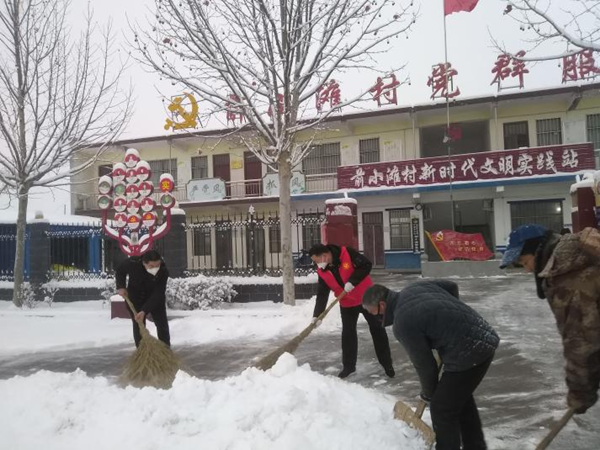 湯陰疫情嚴重,共產黨員常連群、積極分子許慶軍在20日晚11點接到公司支援湯陰抗疫通知后,二話不說,拎起行囊,加入到支援湯陰疫情防控隊伍中去,他們和公司張海林,劉慶剛兩位同志下沉到湯陰縣伏道鄉(xiāng)前小灘村幫助抗疫,攜助村委會干部組織核酸檢測,維持村民做到足不出戶,街門鎖閉,住家隔離。22日,一場大雪,席卷大地,他們一大早掃起雪來開始一天的工作,表示疫情不退,絕不收兵。
