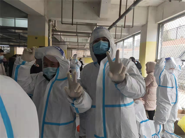1月9日,全市疫情嚴(yán)重,要求全員核酸檢測,安陽市腫瘤醫(yī)院醫(yī)護(hù)人員在一線奮戰(zhàn),隊(duì)員們?cè)诤蠓饺ε浜希?4小時(shí)隨時(shí)待命。因?yàn)橐咔榉揽?,街面上店鋪都關(guān)閉了,隊(duì)員們都是一碗方便面充饑,工作和生活條件雖然艱苦,但是沒有一點(diǎn)怨言。隊(duì)員們紛紛表示,奮戰(zhàn)一線的醫(yī)護(hù)工作者比我們更艱苦,他們?cè)趪?yán)寒中一天工作十幾個(gè)小時(shí),我們應(yīng)該向他們學(xué)習(xí)。干好自己的工作,堅(jiān)決打贏這場抗擊奧密克戎病毒戰(zhàn)役!