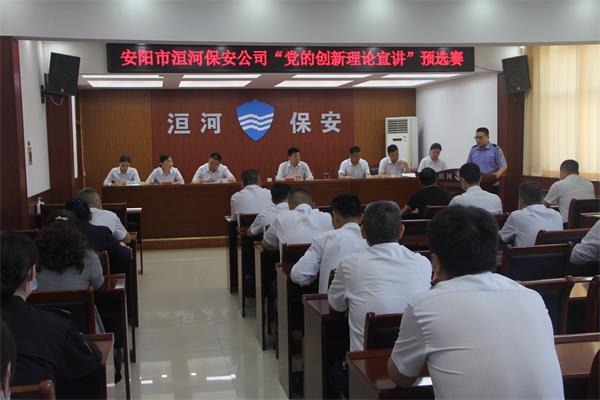為深入學(xué)習(xí)貫徹習(xí)近平新時(shí)代中國(guó)特色社會(huì)主義思想和黨的十九大及歷次全會(huì)精神,推動(dòng)黨的創(chuàng)新理論入腦入心,團(tuán)結(jié)引領(lǐng)廣大職工堅(jiān)定跟黨走、建功新時(shí)代,激勵(lì)全體洹河保安人以更加昂揚(yáng)的精神狀態(tài)迎接黨的二十大勝利召開,2022年5月19日下午,公司黨委舉辦“黨的創(chuàng)新理論宣講”預(yù)選賽,黨委書記、董事長(zhǎng)、總經(jīng)理王高峰,黨委委員、副總經(jīng)理魏東到會(huì)觀摩,比賽由黨委副書記張錫軍主持。