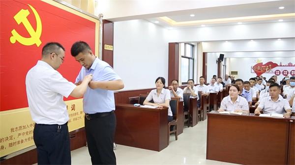 大會(huì)首先舉行預(yù)備黨員佩戴黨徽儀式,王高峰同志向新黨員同志表示祝賀,親手為2022年度預(yù)備黨員代表佩戴黨徽,希望新同志不辜負(fù)黨組織的期望,無(wú)愧于共產(chǎn)黨員的光榮稱(chēng)號(hào)。