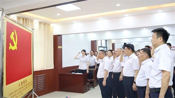 接著,在王高峰同志帶領(lǐng)下,面向鮮紅的中國(guó)共產(chǎn)黨黨旗,新、老黨員舉起右拳、莊嚴(yán)宣誓,鏗鏘有力的誓言響徹會(huì)場(chǎng),短短80個(gè)字的入黨誓詞,震撼著現(xiàn)場(chǎng)每一位黨員。