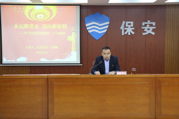 11月7日下午,為深入學(xué)習(xí)宣傳貫徹黨的二十大會議精神,公司黨委書記、董事長王高峰在五樓會議室以“永遠(yuǎn)跟黨走 邁向新征程”為主題開展宣傳貫徹黨的二十大精神專題黨課,公司機(jī)關(guān)黨支部、第二黨支部全體黨員、預(yù)備黨員、入黨積極分子參加了專題黨課。
