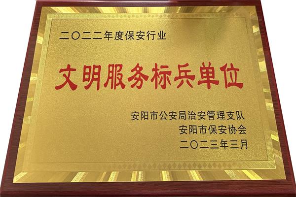 5月30日下午,安陽市保安協(xié)會(huì)召開2022年度總結(jié)表彰大會(huì),公司被評為“安陽市保安行業(yè)文明服務(wù)標(biāo)兵單位”,其中公司守押一大隊(duì)、華潤燃?xì)庥邢薰颈0矋彽?個(gè)崗點(diǎn)被安陽市保安協(xié)會(huì)評為“文明示范崗”,公司楊國慶、李志勇等17名同志被安陽市保安協(xié)會(huì)評為“優(yōu)秀保安員”,公司張運(yùn)洲同志榮獲安陽市保安協(xié)會(huì)“喜迎黨的二十大 保安護(hù)航新征程”征文比賽一等獎(jiǎng)。