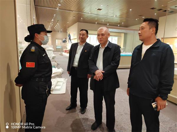 在殷墟博物館,魏東拜訪了殷墟博物館黨總支書記、常務(wù)副館長趙清榮和副館長徐河建,深入了解館方需求以及安保工作中的不足之處。趙清榮對特保大隊(duì)殷墟中隊(duì)認(rèn)真負(fù)責(zé)的工作態(tài)度給予了充分肯定。魏東表示,公司將按照博物館領(lǐng)導(dǎo)要求和合同約定,全力以赴做好新展館開館前的各項(xiàng)安保工作。隨后,魏東來到殷墟新展館,認(rèn)真查看駐點(diǎn)勤務(wù)情況,詳細(xì)了解特保隊(duì)員的工作環(huán)境和思想動態(tài)。魏東強(qiáng)調(diào),目前新展館處于施工沖刺和前期布展的關(guān)鍵階段,特保隊(duì)員一定要克服困難,履職盡責(zé),為新展館順利開館提供安全保障。