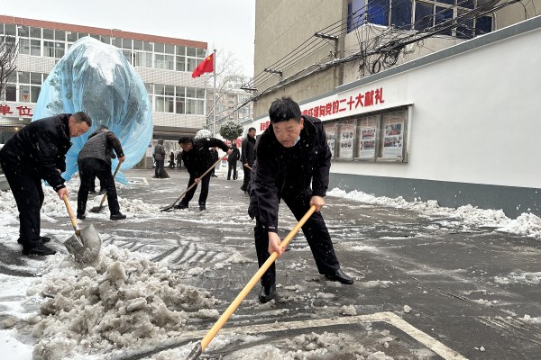 公司黨委書記、董事長王高峰帶領(lǐng)班子成員率先垂范,公司干部職工積極響應(yīng),有序展開清冰掃雪工作。大家不畏嚴(yán)寒,分工明確、團(tuán)結(jié)合作,手持鐵锨、揮動掃帚,鏟除積雪、清掃路面,配合默契、干勁十足?,F(xiàn)場“揮舞的鐵鍬”成為了皚皚白雪中暖心的一道風(fēng)景線。由于準(zhǔn)備充分,組織有力,發(fā)動及時,經(jīng)過1個多小時的不懈努力,辦公樓院內(nèi)和門前三包積雪基本清理干凈,保障了道路暢通安全,路面恢復(fù)了平日的干凈和整潔。