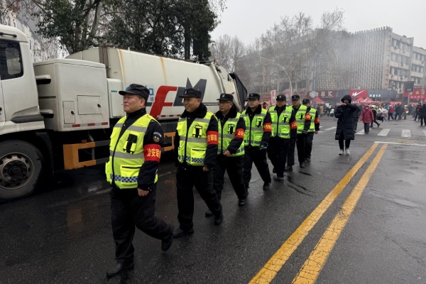 廟會(huì)當(dāng)日清晨4時(shí),全體執(zhí)勤人員頂風(fēng)冒雨、不畏嚴(yán)寒,準(zhǔn)時(shí)到崗到位。公司領(lǐng)導(dǎo)班子深入重點(diǎn)區(qū)域督導(dǎo)檢查;執(zhí)勤隊(duì)員積極配合交管部門開展交通管控、疏導(dǎo)人流車流、保障應(yīng)急通道暢通,加密重點(diǎn)區(qū)域巡邏頻次,及時(shí)勸阻違規(guī)行為,全力維護(hù)現(xiàn)場(chǎng)秩序。