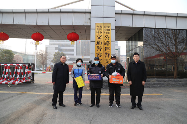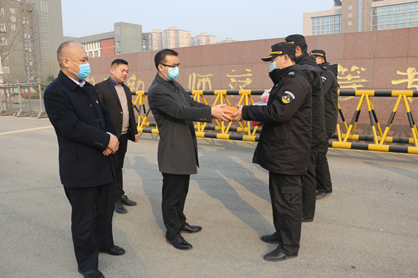 隨后,公司領導分成三組先后到人防安陽幼師、龍安區(qū)政府崗點,守押六大隊、守押十大隊駐地,特保大隊開發(fā)區(qū)巡防駐地、中國文字博物館崗點,鼎誠物業(yè)海興御花園、交警支隊項目部,藍盾駕校、鼎信公司,對堅守在工作崗位的員工進行了慰問。