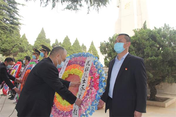 重溫革命戰(zhàn)爭年代的烽火記憶,感受理想信念的強大力量,探尋新時代下烈士精神帶給我們的深刻啟示。 天地英雄氣,千秋尚凜然。高高矗立在陵園里的“革命烈士永垂不朽”紀念碑莊嚴而肅穆。黨委委員魏東懷著無比崇敬的心情移步拾階而上,向革命烈士敬獻花籃,仔細整理花籃緞帶。干部職工向革命烈士紀念碑鞠躬致敬,肅立默哀,聆聽祭文,深切緬懷,寄托哀思,以革命先烈的崇高精神為鏡,接受了一次深刻的宗旨教育和理想信念教育。
