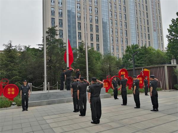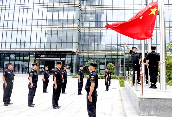 7月1日清晨7點(diǎn)40分安陽市聯(lián)通公司大院內(nèi),聯(lián)通公司全體黨員干部、職工整齊列隊(duì),在這里隆重舉行“慶七一”升國(guó)旗儀式。一隊(duì)整裝威嚴(yán)、精神抖擻的特保隊(duì)員等候命令,伴隨著指揮員一聲“標(biāo)兵就位”口令拉開了儀式序幕。