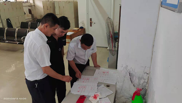 翟新杰一行實地走訪各大隊落實公司專項整治活動中需要整改的問題和分公司開展“江蘇運鈔車撞車事故”警示教育,以及防疫工作登記、各種臺賬。