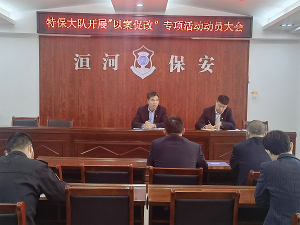 為認(rèn)真學(xué)習(xí)貫徹公司“以案促改”活動(dòng)方案精神,3月14日下午,特保大隊(duì)在公司南二樓會(huì)議室召開(kāi)班長(zhǎng)以上骨干動(dòng)員會(huì)。大隊(duì)長(zhǎng)李樞林對(duì)專項(xiàng)活動(dòng)大隊(duì)方案進(jìn)行部署,總經(jīng)理助理趙潤(rùn)平參加動(dòng)員會(huì)并提出具體要求。