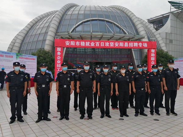 7月19日,人防五大隊(duì)圓滿完成安陽(yáng)市穩(wěn)就業(yè)百日攻堅(jiān)專場(chǎng)招聘會(huì)安保任務(wù)。