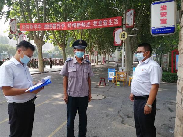 在第十一中學(xué)、安林中學(xué)、安陽(yáng)市體育運(yùn)動(dòng)學(xué)校檢查中,重點(diǎn)對(duì)保安疫情防控工作流程、個(gè)人防護(hù)以及學(xué)校有關(guān)疫情期間的要求,進(jìn)行了詳細(xì)的詢問(wèn)。對(duì)檢查中發(fā)現(xiàn)的問(wèn)題,立即整改。進(jìn)一步規(guī)范執(zhí)勤著裝,要求高峰期間持安保器械立崗,熟悉疫情防控應(yīng)急處置預(yù)案,嚴(yán)格落實(shí)好疫情防控的各項(xiàng)措施。