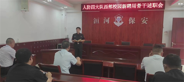 9月3日上午,人防四大隊西部校園新聘用骨干述職會在公司南二樓會議室召開,人防四大隊大隊長陳志***、副大隊長李******參加述職活動并擔(dān)任評委,西部校園12名代理班長進(jìn)行述職匯報。