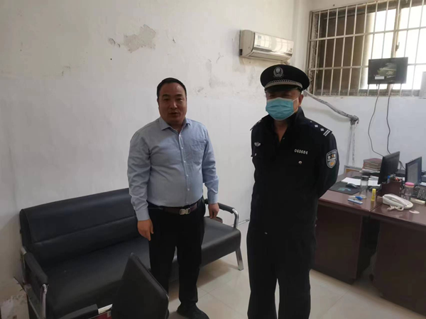 10月10日,殷商分局民警到守押五大隊(duì)檢查槍彈、消防安全工作,大隊(duì)長馮文峰陪同檢查。