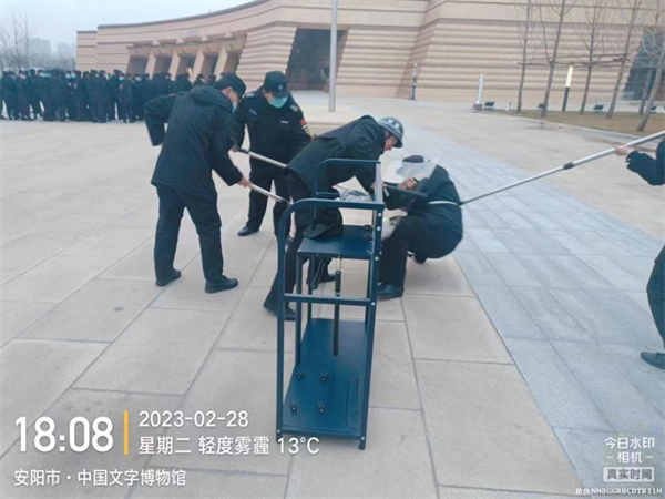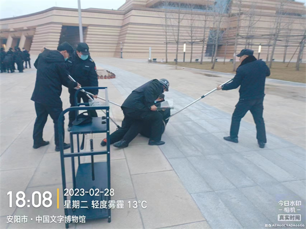 為增強(qiáng)特保隊(duì)員的反恐安全意識(shí),提高對(duì)暴恐突發(fā)事件的應(yīng)變和處置能力,2月28日,特保大隊(duì)駐中國文字博物館中隊(duì)組織開展了反恐防暴應(yīng)急演練活動(dòng)。