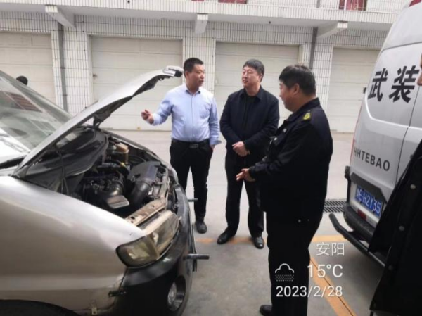 2月28日上午,守押分公司副經理王洪亮、韋洪東到七大隊檢查工作,大隊長楊中朝陪同檢查。
