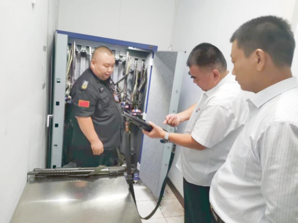 檢查過程中,韋洪東到大隊守庫室檢查了各項押運交接登記記錄本,查看并核對了槍彈數量、槍支擦拭及保養(yǎng)情況;在大隊辦公室仔細查看了大隊談心記錄、跟車、槍彈保養(yǎng)和預案演練等內容,詳細了解近期公司下發(fā)各類文件的學習落實情況。王洪亮指出,“雙節(jié)”臨近,要切實做好槍彈安全管理工作和車輛安全隱患排查,做好各項工作臺賬登記,并適時開展隊員家訪工作。