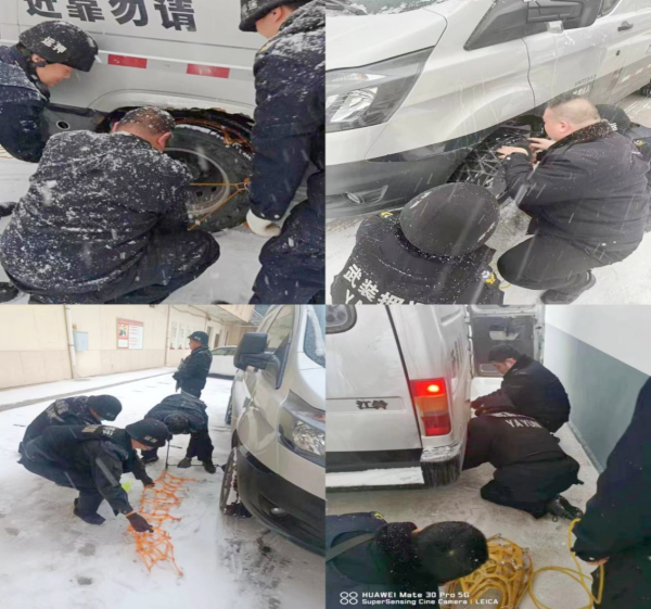 各車組立即按照大隊(duì)要求,迅速行動(dòng),安裝好防滑鏈,繼續(xù)執(zhí)行押運(yùn)任務(wù),確保冰雪天氣大隊(duì)勤務(wù)安全運(yùn)行。