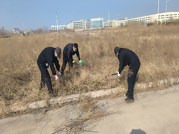 接到任務(wù)后,各小組成員開始進行有序的分工協(xié)作,大家踴躍參與,誰也不甘落后,兩人結(jié)伴,三五成群,搶在前、干在先,有的用機器推,有的用手拔,有的用剪刀修,有的用鐮刀割,還有的往外清理……,分工明確,責(zé)任到人,不放過任何一個死角和一株雜草。大家雖然忙得熱火朝天、汗流浹背、滿身塵土,但沒人埋怨,更沒人停下來,充分展現(xiàn)了鼎信公司員工不怕苦、不怕臟、不怕累的良好精神風(fēng)貌。