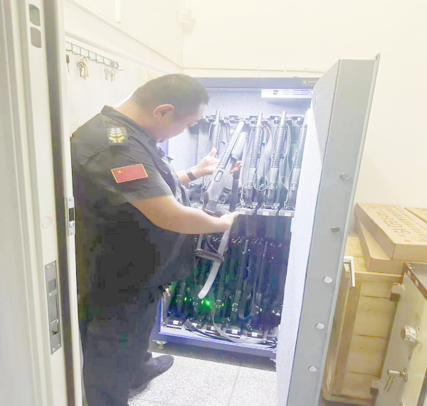檢查中,王勇重點對槍彈庫的安全、領取存放槍支流程制度和雙人雙崗落實情況進行檢查,并對槍支彈藥的數(shù)量及磨損情況進行現(xiàn)場核實。針對發(fā)現(xiàn)的問題,及時對槍庫值守人員進行批評教育,并要求立即整改。王勇強調,槍彈安全無小事,槍庫槍支更是重中之重,任何人都不得麻痹大意;日常工作中守庫員必須提高思想認識,從嚴管理槍彈。