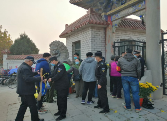 勤務實施期間,隊員們每天早六點即準時進入崗位,全力維護祭祀治安秩序。大家一面堅持原則,依法依規(guī)文明執(zhí)勤,一面耐心給群眾做好宣傳解釋工作,避免祭掃人員不理解、不配合,導致事態(tài)升級。因反復提醒、竭力勸阻攜帶、燃燒紙帛現(xiàn)象,許多同志的嗓子發(fā)癢嘶啞,卻全然不顧。同時,采取靈活機動的工作方法,積極做好引導,為行動障礙的祭掃人員提供方便,受到群眾好評。