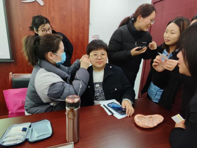 講座結束后,王曉娜護士組織女職工體驗了耳穴壓豆調理,調理中,大家不時提出相關健康疑問,醫(yī)生都耐心詳細地給與了解答并提出建議。