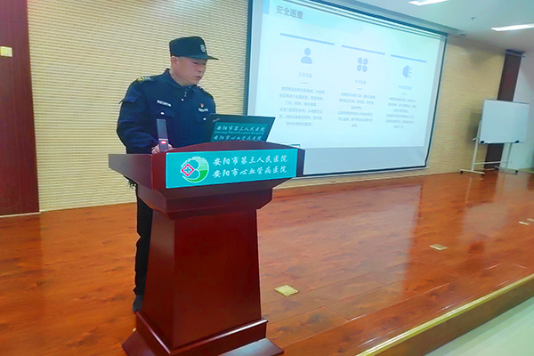 3月11日上午,人防二大隊(duì)教官楊承濤應(yīng)第三人民醫(yī)院之邀,在醫(yī)院行政報(bào)告廳為該院30余名安保人員開展崗位技能專項(xiàng)培訓(xùn)。副院長(zhǎng)徐江海、保衛(wèi)科科長(zhǎng)王惠偉和人防二大隊(duì)副大隊(duì)長(zhǎng)張海林、尚斌參加。