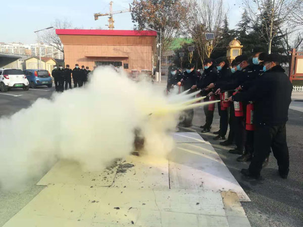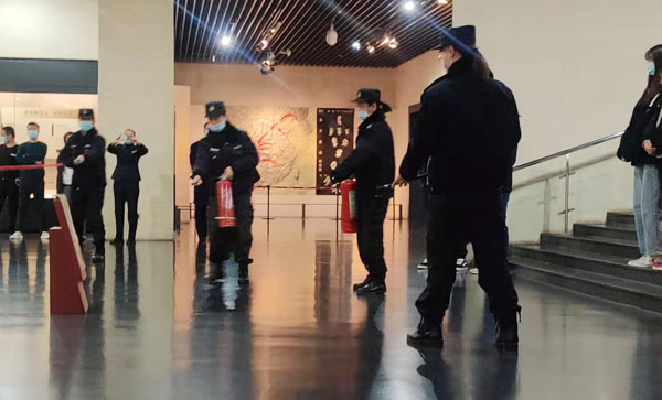 12月18日上午8點(diǎn)30分,特保大隊(duì)派駐中國(guó)文字博物館中隊(duì)按照客戶年末冬季消防防控要求,結(jié)合公司《冬春季火災(zāi)防控實(shí)施方案》活動(dòng)內(nèi)容,進(jìn)行了消防演練??蛻舭脖2恐魅螌O琳杰和全館工作人員觀摩??蛻舫浞挚隙岁?duì)員的消防技能。特保大隊(duì)隊(duì)長(zhǎng)李樞林指導(dǎo)此次演練。