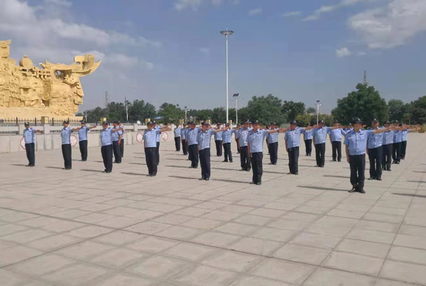 6月5日,人防四大隊先后在殷墟廣場和中國工商銀行大院內(nèi)進行會操,檢驗各中隊階段訓練成果。