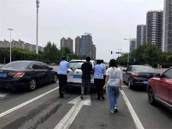 2021年7月2號(hào)上午11點(diǎn)50左右,人防一大隊(duì)高新區(qū)巡防隊(duì)楊銀書巡邏至黃河南路與中華路口,看見快車道上停著一輛外地車牌的白色汽車,開著雙閃警示燈,車后也未放安全警示牌。一名女同志站在路中間左右觀望非常焦急的樣子。疾駛的車輛從身邊穿過(guò)非常危險(xiǎn)。