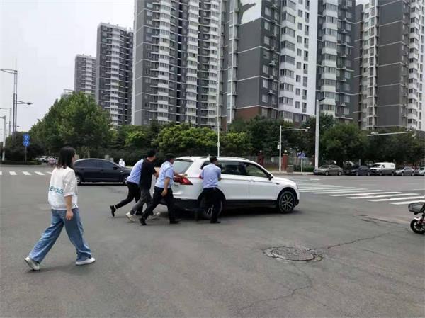 隊(duì)員馬上停車上前了解情況,原來(lái)女同志是個(gè)新手,因汽車出現(xiàn)故障無(wú)法啟動(dòng)。了解情況后,隊(duì)員給司機(jī)講了車輛停在馬路中間的危險(xiǎn)性,同時(shí)組織隊(duì)員幫助其將汽車推到安全地段,等待救緩。