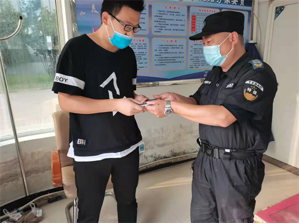 9月9日下午18時許,駐守在中國銀行人防一大隊隊員李勇在ATM自助設備附近執(zhí)勤巡邏時,發(fā)現(xiàn)地上有部九成新手機,他立即聯(lián)系了當班負責人,并在原地等失主。等了半小時未果后,把這部手機交給班長保管。一個小時后失主打來電話尋找手機,得知是銀行保安拾到了非常欣喜。一會兒失主付先生趕到現(xiàn)場,經核對無誤后將手機領回,手機失而復得,付先生臉上露出燦爛的微笑,他激動地說:“真的太感謝你們了,手機不值多少錢,但里面有很多照片和電話號碼不能丟啊。他對保安隊員的拾金不昧行為表示感謝!