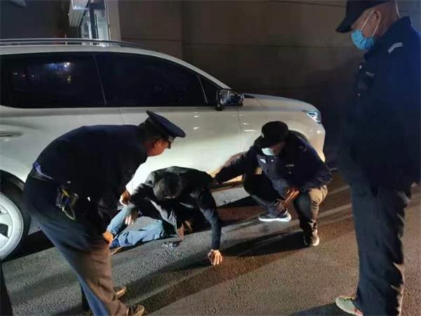 3月29日21:30許,駐龍安區(qū)巡防隊郭國峰、崔志濤、肖鵬、畢治華等隊員巡邏至梅東路與龍圖街西北角處時,借著巡邏車的燈光發(fā)現(xiàn)一輛轎車旁躺著一個人。于是,他們趕忙過去查看,來到近前,發(fā)現(xiàn)一名男子身上散發(fā)出很濃的酒氣。由于該路段沒有路燈,能見度極差,不易被發(fā)現(xiàn),人來車往,極易發(fā)生事故。因該男子已經(jīng)神智不清,無法給他正常交流,崔志濤隨撥打了110,隊員們一邊對該男子進(jìn)行保護(hù),防止發(fā)生意外,一邊勸離圍觀群眾,防止交通堵塞。