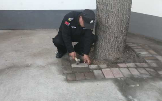 說干就干,保安隊(duì)員下班后,每天晚走一會(huì)兒,又是刨樹根,又是推沙石、找磚塊,用了2天時(shí)間鋪磚500余塊,整修地面30多平米,圓滿完成任務(wù)。