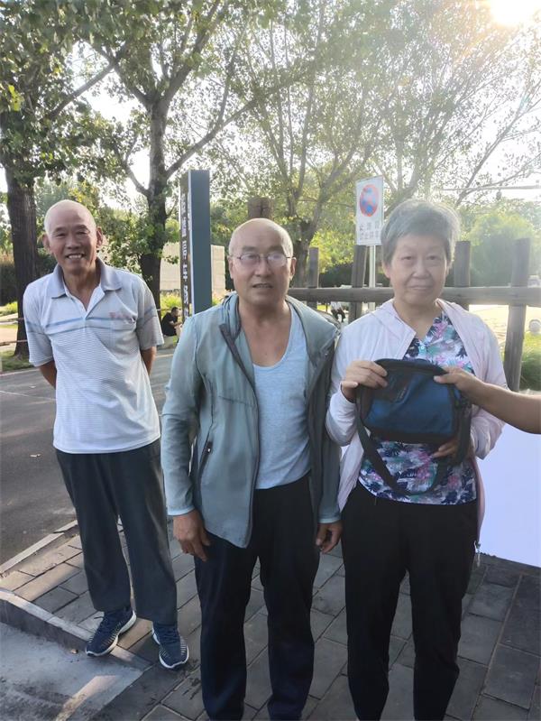 9月8日下午16:50分許,該大隊六中隊保安員周來娣、朱志芳在殷墟路和廣場南路路口執(zhí)勤時,有兩男一女三位老年人向她們走來,周來娣迎上前禮貌地問:“請問老同志,有什么事需要幫助嗎?”三人說:“在廣場南路發(fā)現(xiàn)路邊有一個包,怕失主找包著急,請你們幫忙尋找失主。”周來娣忙說:“先替失主感謝你們拾金不昧的精神?!苯又诒娙说囊娮C下,隊員查看后,發(fā)現(xiàn)包里有身份證、手機、錢包、銀行卡等物。于是,她們用電喇叭錄好招領啟示,在警亭滾動播放。不一會兒,先后有三個人前來認領。慎重起見,班長郭國峰讓來人說出包的特征和包內物品,但都對不上號。后來有一位約70歲的老翁領一小女孩前來認領,經(jīng)過確認,確定是真正的失主。這時,撿包者正好路過警亭,周來娣將撿包者告知失主。失主很感動,趕忙買來飲品表示感謝。