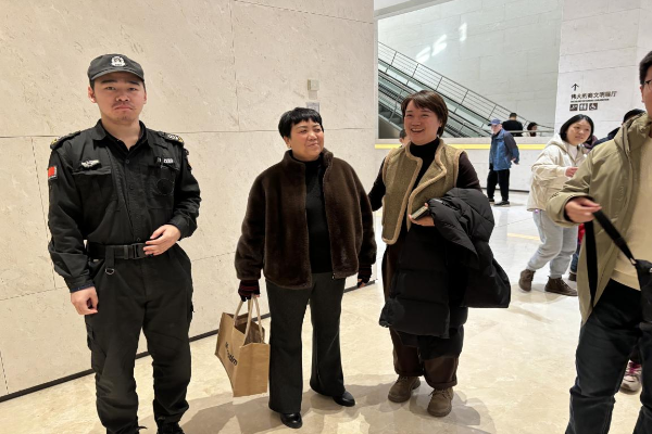 1月29日,殷墟博物館內(nèi)游客絡(luò)繹不絕。一名60多歲的老人在參觀過程中與家人走散,焦急萬分。特保隊(duì)員李政元發(fā)現(xiàn)后,立即上前詢問情況,并耐心安撫老人情緒。通過老人提供的家人聯(lián)系方式,李政元迅速與老人的家屬取得聯(lián)系。不久后,老人的家人趕到現(xiàn)場,老人的臉上洋溢著感激的笑容,對(duì)保安人員的熱心服務(wù)贊不絕口。