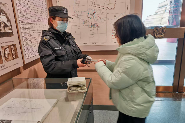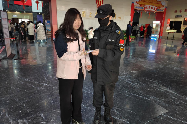 2月2日下午15:20左右,中國文字博物館內(nèi),一名家長十分慌張地跑到安檢處,請(qǐng)求特保隊(duì)員協(xié)助尋找孩子,稱11歲的孩子在參觀過程中走失,已自行尋找半小時(shí)未果,特保隊(duì)員了解情況后,通知所有崗位進(jìn)行尋找并啟動(dòng)廣播進(jìn)行告知,通過不懈努力,幫其游客找到走失孩子。