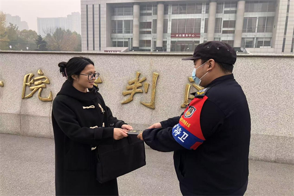 11月3日,律師李某不小心把自己的律師證丟失在了中院大門外,特保隊(duì)員付英祺撿到律師證件后,第一時(shí)間查找了李某所在律師事務(wù)所電話,并迅速聯(lián)系到了李律師。隨后,李律師匆匆來到中院,付英祺仔細(xì)核對身份信息無誤后,將律師證完好無損地交還。接過失而復(fù)得的證件,李律師連連道謝,對特保隊(duì)員認(rèn)真負(fù)責(zé)、高效務(wù)實(shí)的服務(wù)態(tài)度給予了高度贊揚(yáng)。