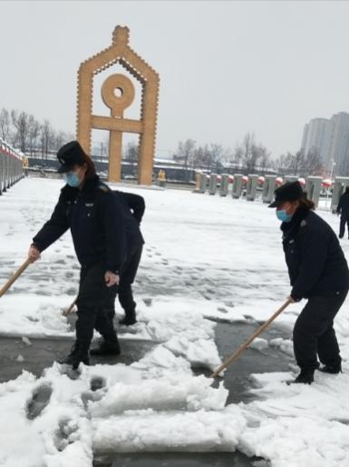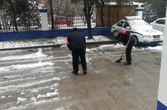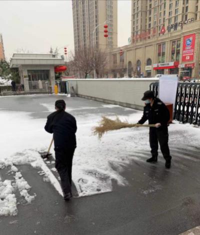 2月24日18時許,新年的******場雪如期而來,飄落的雪花給特保大隊派駐崗點(diǎn)院內(nèi)道路上鋪上了一層厚厚的積雪,為了消除安全隱患,確??蛻魡挝活I(lǐng)導(dǎo)與工作人員的出行安全,特保大隊派駐各客戶單位隊員迅速行動起來,清掃積雪。隊員們周到的服務(wù)受到客戶好評。