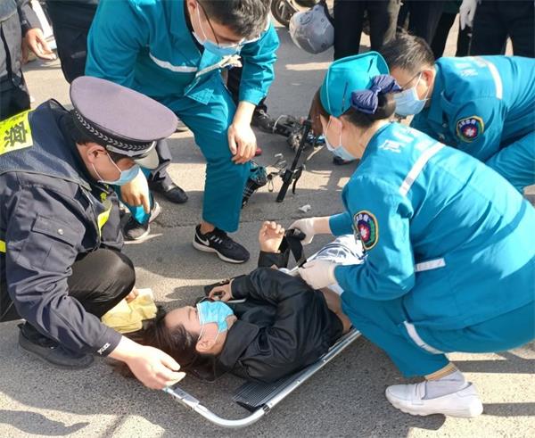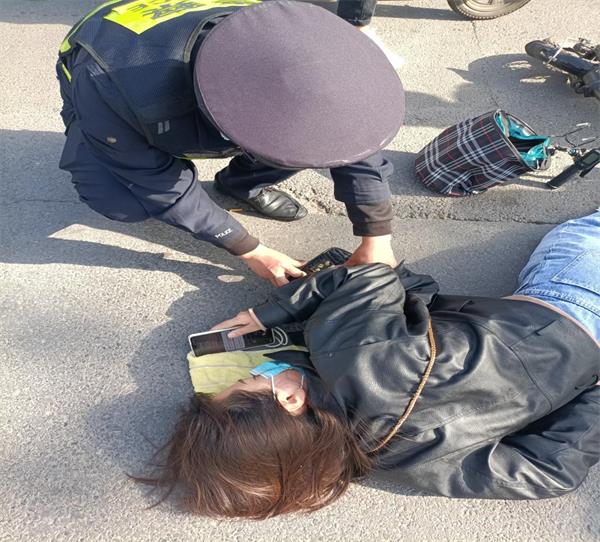 隊員了解情況后,幫助李女士撥打了120,并聯(lián)系了李女士愛人。因不知了解此事件是不是屬于交通肇事,但為了保險起見,隊員同時撥打122,通知交警。