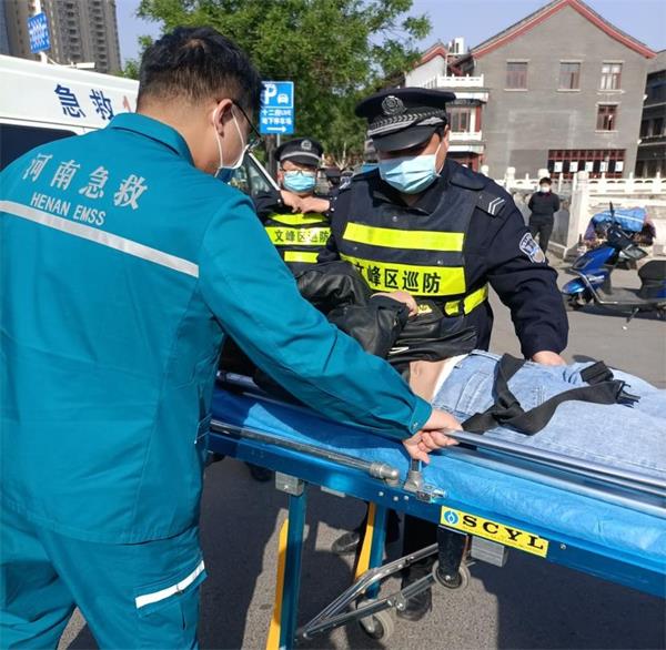 4月28日8時40分許,人防一大隊駐文峰區(qū)專職巡防隊隊員梁子力、李帥、石玉濤等11名隊員在轄區(qū)巡邏,來到十二府附近,看到一女子倒在地上呻吟,旁邊還一輛翻倒的電動車。隊員立即上前了解情況。原來,騎電動車的李女士為了避讓轉(zhuǎn)彎的汽車側(cè)翻在地,并摔傷了腰部。
