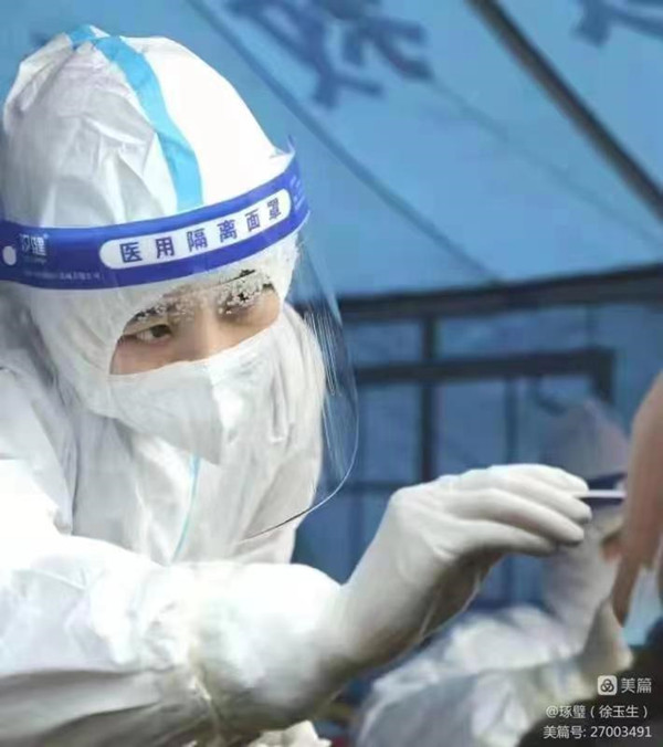 抗疫干部聚合力,為民服務(wù)志不渝。 疫情防控勤務(wù)員,排查引導不遲疑。 心系千家做宣傳,戴好口罩守秩序。 “四早”措施是關(guān)鍵,“兩防”防線織緊密。 堅持落實網(wǎng)格化,管理高效有條理。 采樣掃碼筑壁壘,守護健康驅(qū)瘟疫。