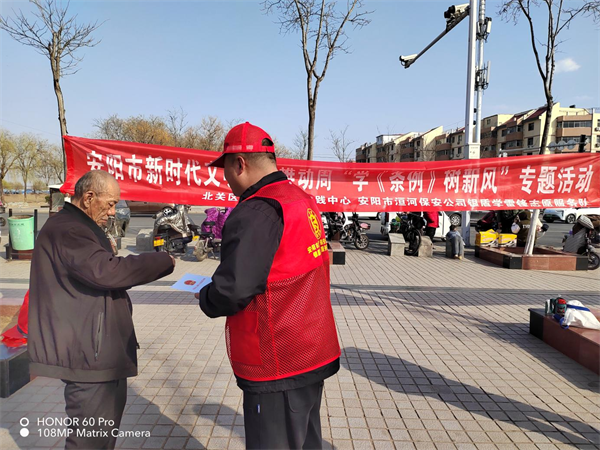 為大力培育和弘揚(yáng)社會(huì)主義核心價(jià)值觀(guān),引導(dǎo)廣大群眾樹(shù)立文明觀(guān)念,3月3日下午,公司組織志愿者來(lái)到平原橋法治廣場(chǎng)開(kāi)展安陽(yáng)市新時(shí)代文明實(shí)踐推動(dòng)周“學(xué)條例 樹(shù)新風(fēng)”《安陽(yáng)市文明行為促進(jìn)條例》集中宣傳活動(dòng)。