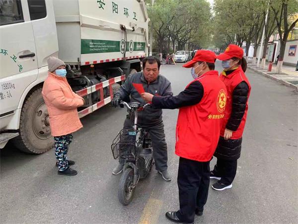 活動中,在盤庚中社區(qū)門口、社區(qū)小廣場、周邊小區(qū)附近,公司志愿者們走進(jìn)樓棟入戶宣傳,走進(jìn)沿街對商戶宣傳,向來往人員進(jìn)行宣傳,共向社區(qū)居民和周邊商戶合計發(fā)放了100余份《安陽市文明行為促進(jìn)條例》宣傳材料。