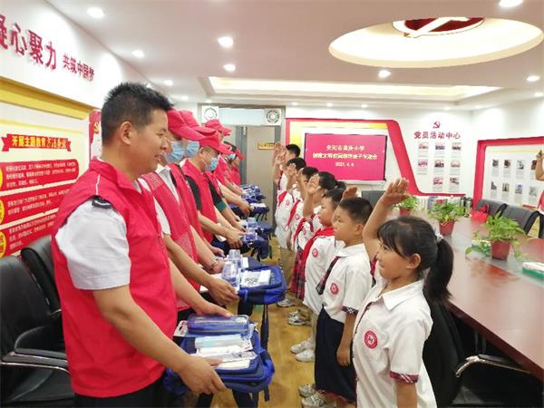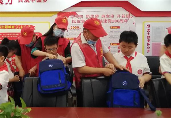 ***后志愿者們來到了黨建活動室,在活動室為學校的留守兒童代表送去了書包、套尺、鋼筆、學習本、熒光筆、筆袋等學習用品,鼓勵孩子們努力學習,學會感恩,成長為一個對社會有用的人。并且希望孩子們克服困難、自強不息,快樂成長。